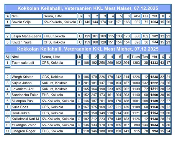 | 08.12.2025 15.33 | Veteraanien KKL Mestaruus |